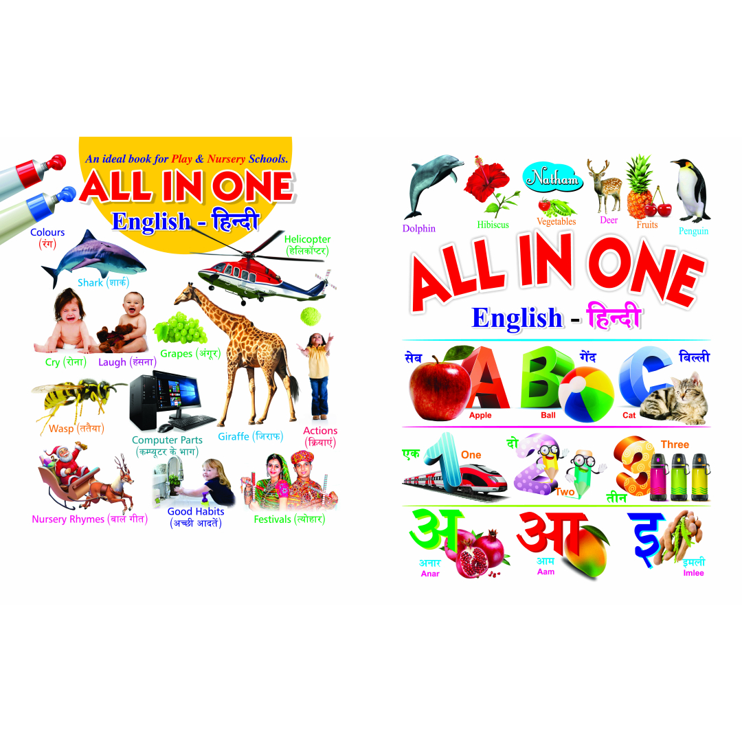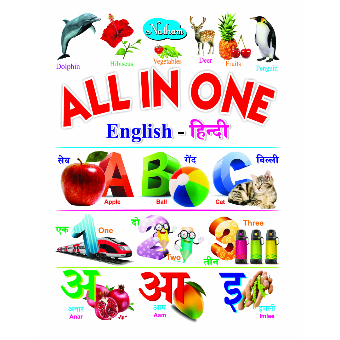 A vibrant and exhaustive “All in One” board book that introduces toddlers to a massive array of essential concepts across both English and Hindi languages.